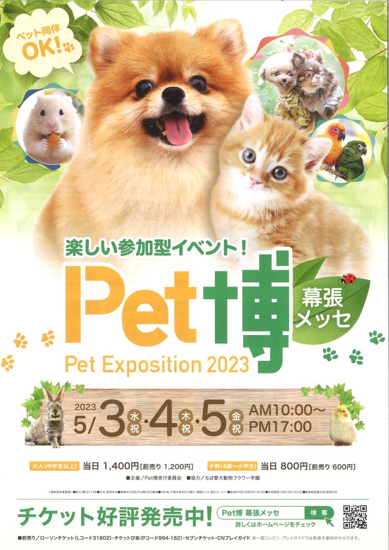 ニュース2023年5月3日(水・祝)~5日(金・祝)幕張メッセにて開催される「Pet博2023幕張メッセ」に出展します!